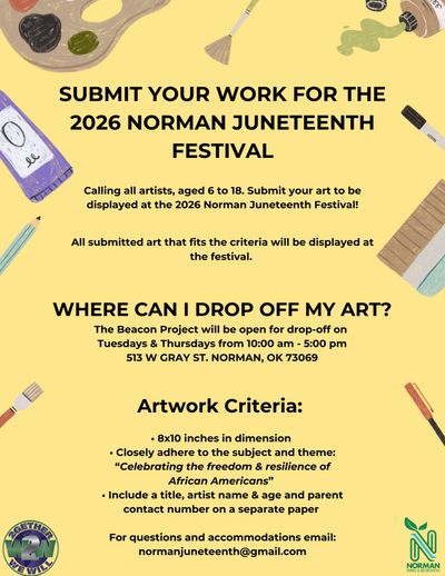 The Norman Juneteenth Festival celebrates the resilience of Black culture and honors African American history through music, food, art and community. Come ready to party with friends and family!